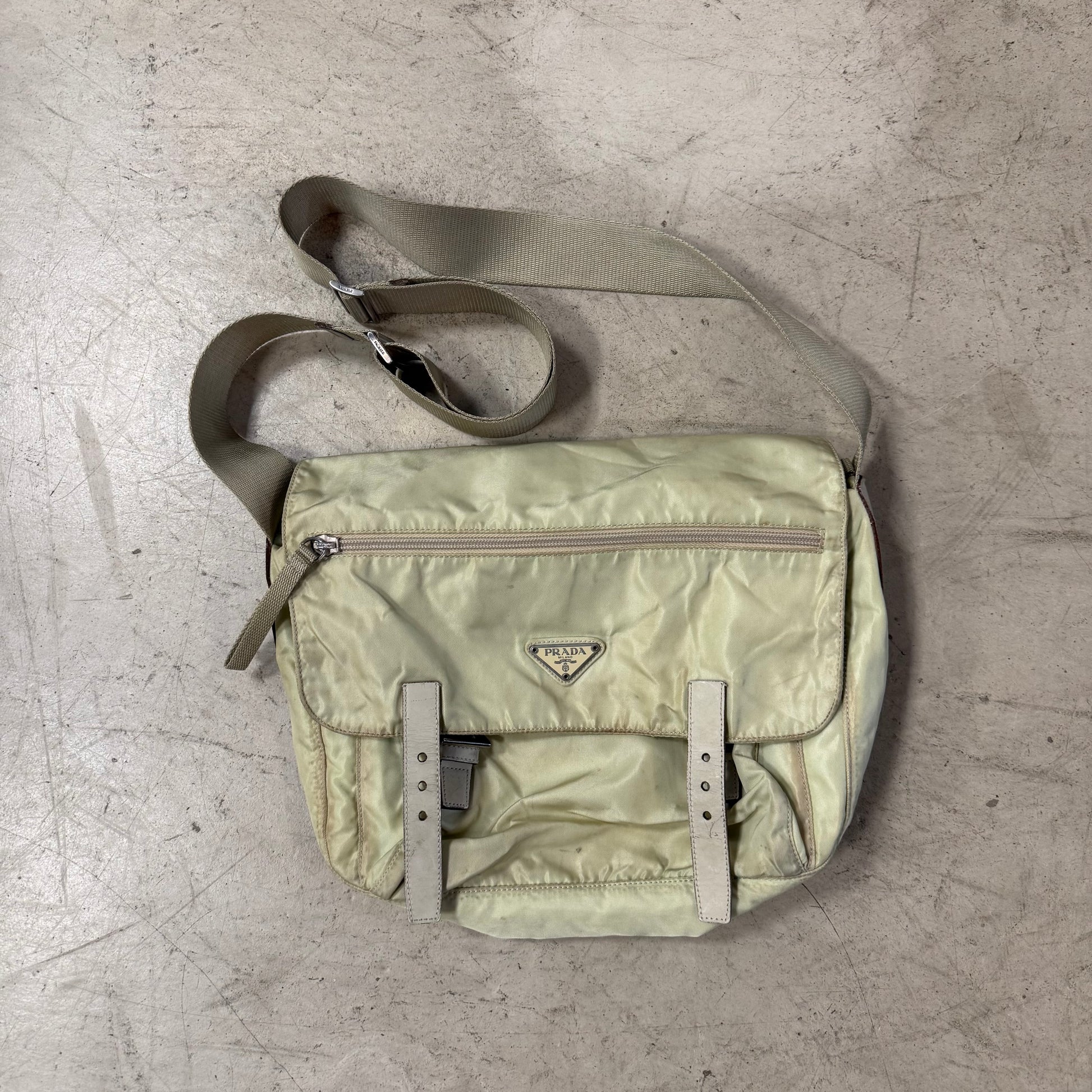 Sacoche Prada Messenger Bag Beige double strap